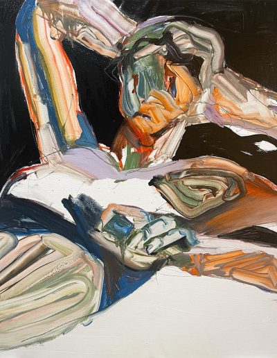 森戸は高校の美術科を卒業後、武蔵野美術大学油絵学科に進むも事情により中退しましたが、絵画制作への情熱は失わず、2022年より制作を再開し、今まさにキャンバスを目の前に情熱を傾けているアーティストです。