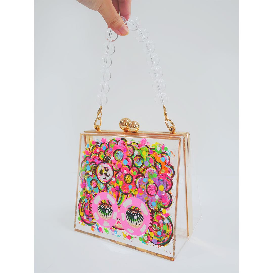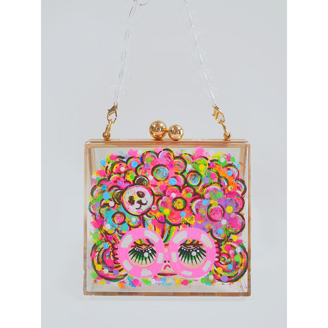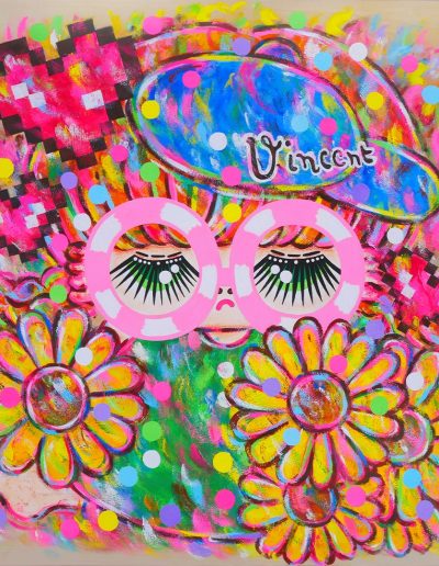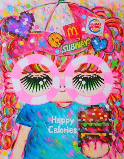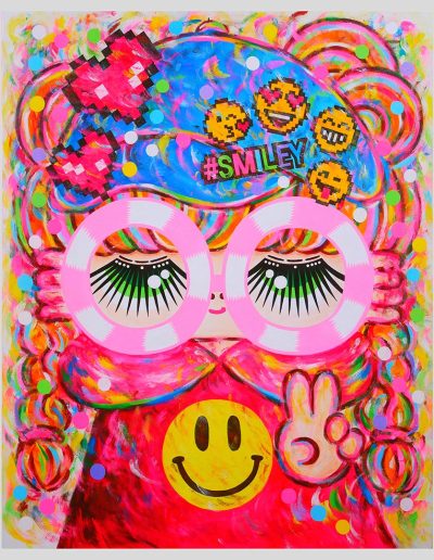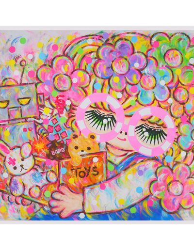 作品の多くがカラフルで可愛らしい少女が必死に何かを訴えようとするモチーフ。日本独自の「少女マンガ」や「ポップカルチャー」表現をベースに可愛らしさと息苦しさが同居する世界観を発信。アプロプリエーション手法を取り入れ、シンプルでリアルな世界が表現される。