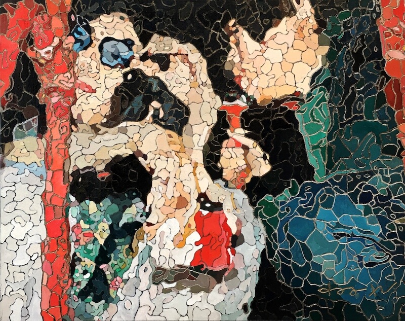 その作品スタイルは、モザイク加工を施した写真のメディウム転写に始まり、2016年以降は主に木製パネルへ直接モザイク状の絵を描いてから、粒の輪郭線を彫刻刀で彫る独自の手法が用いられています。