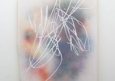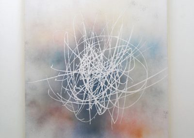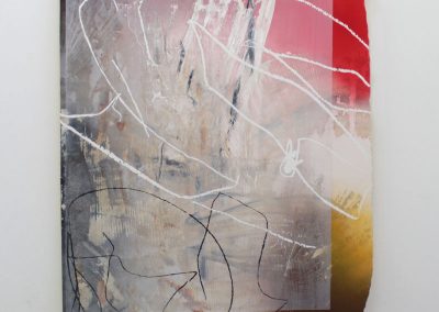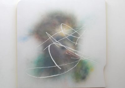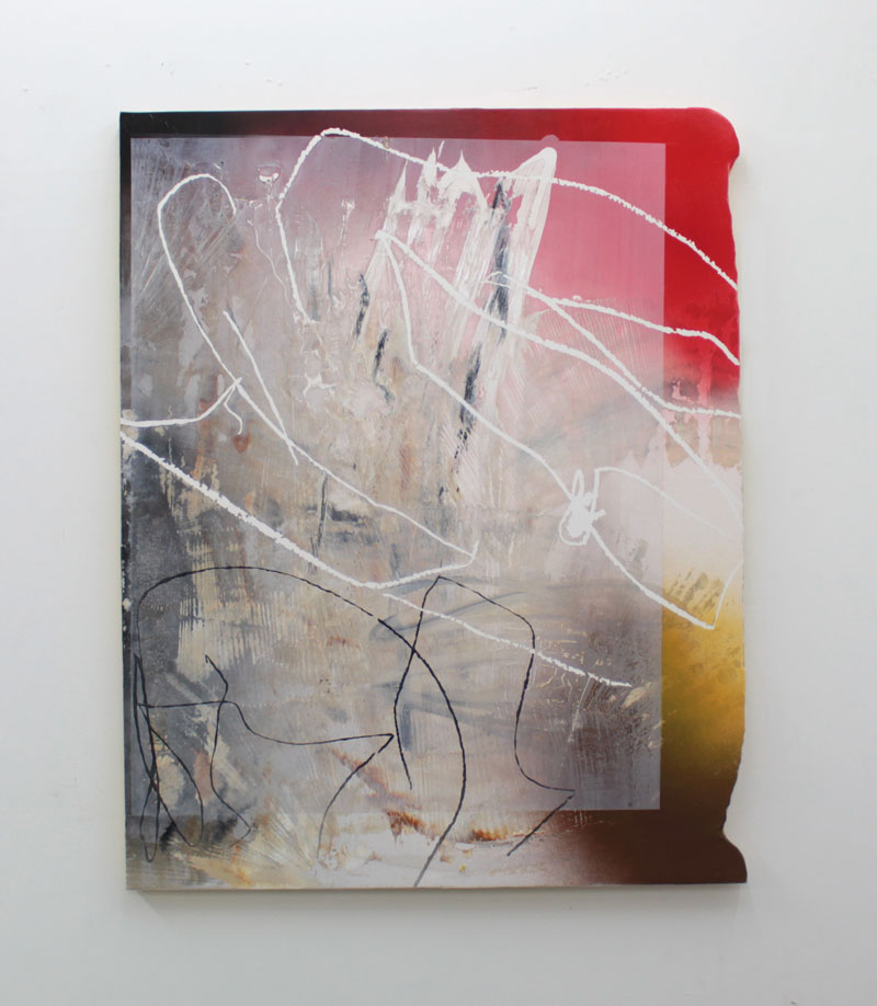 僕は絵画の積層構造に興味があり積層にアクシデントを配置しボードゲームのようにやりとりをする。そして下地から離れ重なっていく層は最終的に存置されていた最下層のイメージが主張する。