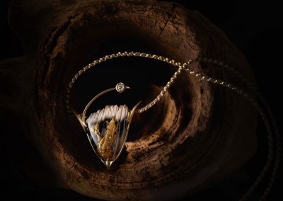 紡がれる時の中、装身具は自然界への畏怖と宇宙意識とのアクセスツールとして、祭祀や護符、また力の象徴として受け継がれ、飛鳥時代に忽然と日本の歴史舞台から消えるも、1500年間の空白の時を経て明治の西洋文化吸収期にファッションアイテムとして上陸、今日ジュエリーとしてそのきらめきが親しまれています。