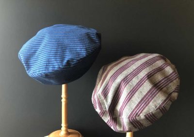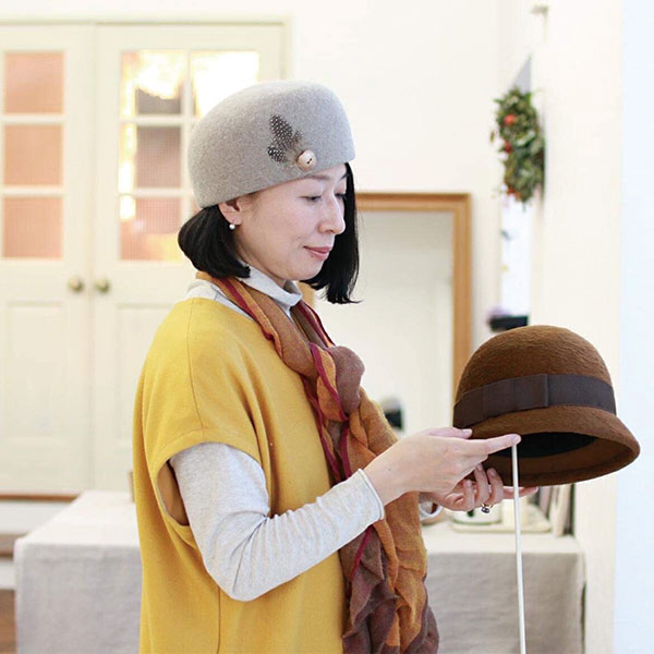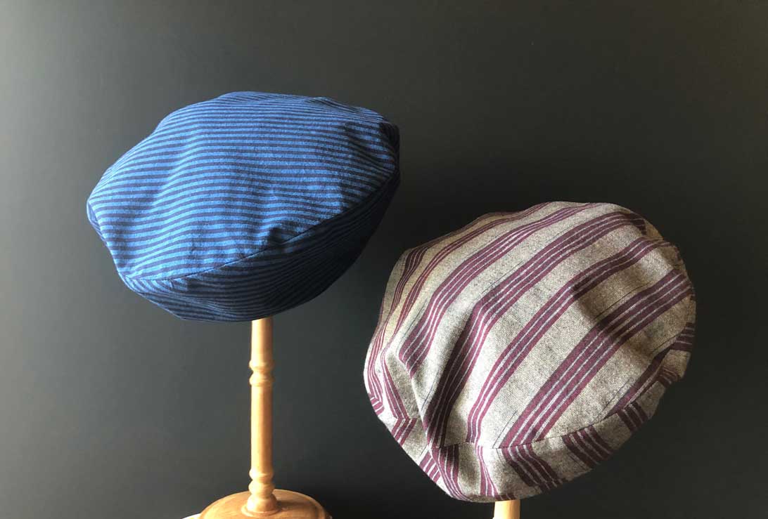 「心地よく、美しく、おひとりおひとりに合った帽子をお作りしたい。なぜなら、その方にぴたりと合ったお帽子は、魅力や個性を引き立てる額縁のようなものだから。」という思いで、型入れ帽子から布地のベレやターバンなど、幅広い帽子をオーダーメイドでお作りしています。今回は、あたたかなウール生地や、Aco の地元 新潟の伝統織物 「亀田縞」のベレやターバンのオーダーをお受けいたします。
