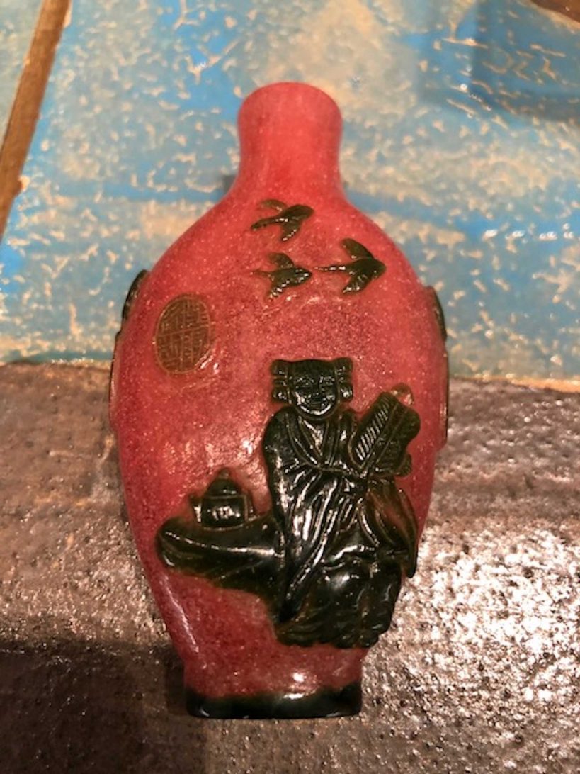 そして、新しい嗜好品として、中国の明の時代(1368~1644)にイタリアからから中国に伝わりました。 その目新しさと、「百病を鎮める」薬効があると言われた嗅ぎ煙草は、上流社会を中心に中国でも大流行しました。 その後の清(1636~1912)時代の極盛期を経て、携帯用の容器から芸術性を競うものへと性格を変化させていきます。