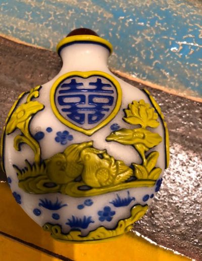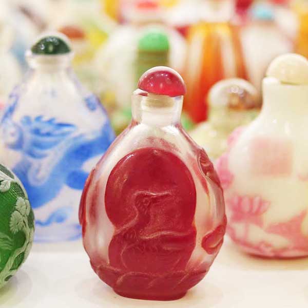 また、その時代の高価な美術品的価値から諸外国の外交の土産品としても活用され、逆戻りをした鼻煙壺は、ヨーロッパの香水瓶に影響を与え今日に至るまで、その形を伝えています。
