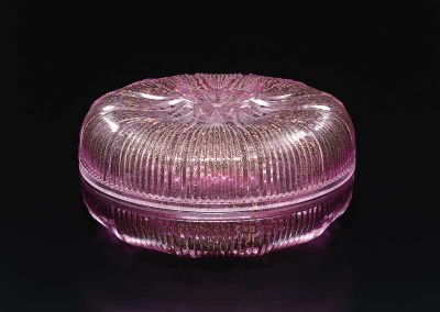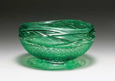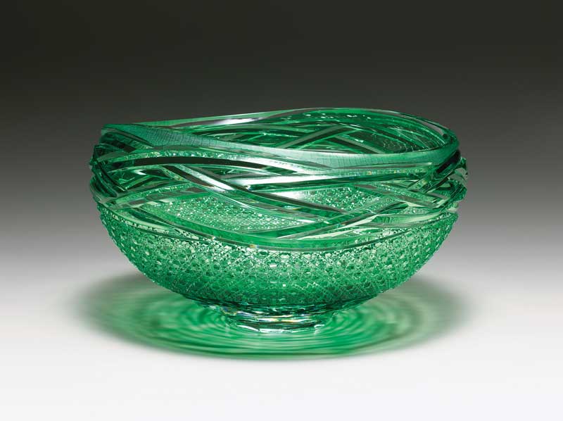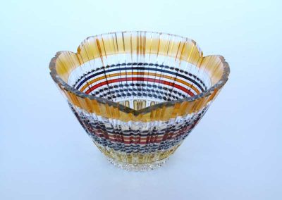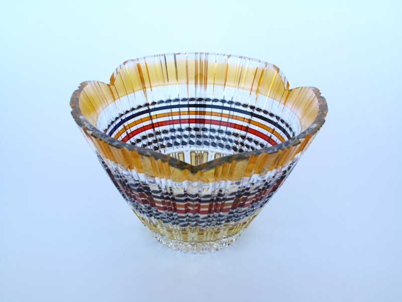 硝子の中に閉じ込められた色の線が幾度も交わり、重なり、束ねる、様々な模様になるさま、また、カット・切子を施す事により、削られ磨き、光を織り込んでゆく輝きを表現できるよう制作しています。