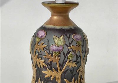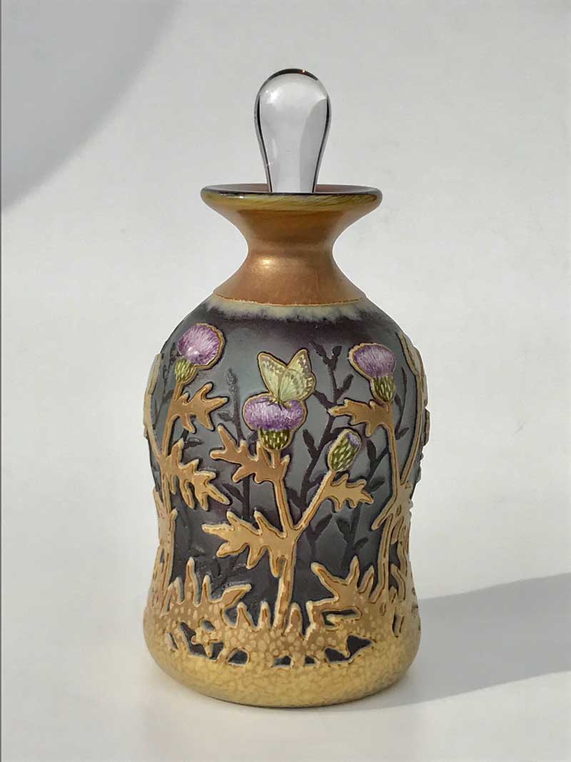 吹いたガラス器にエナメル絵付け