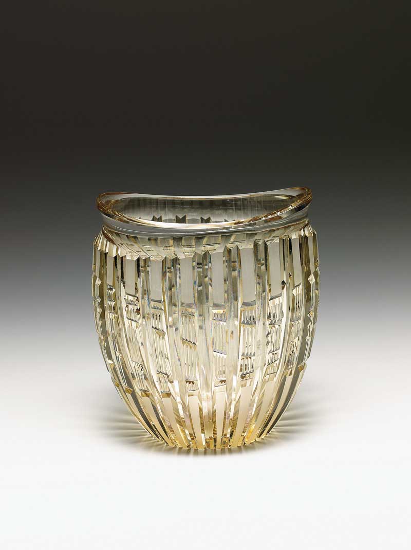 切子のキラキラとした光の反射や映り込み、削って鏡面まで研磨した面に覗き見るガラスの中の不思議な世界に魅力を感じ模索制作しています。