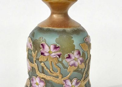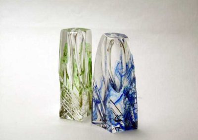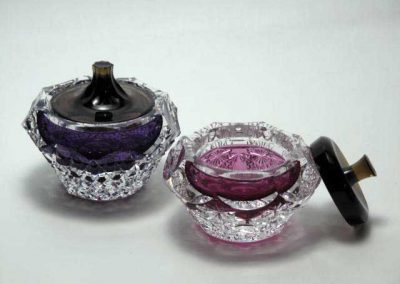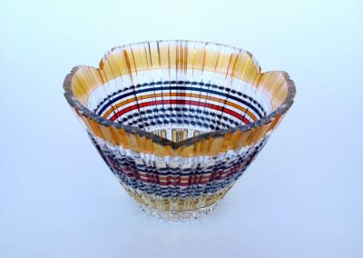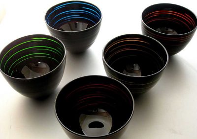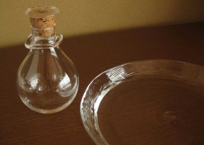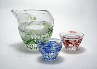 吹いたガラス器にエナメル絵付け