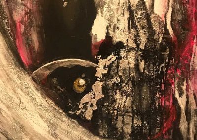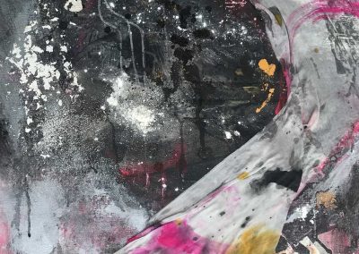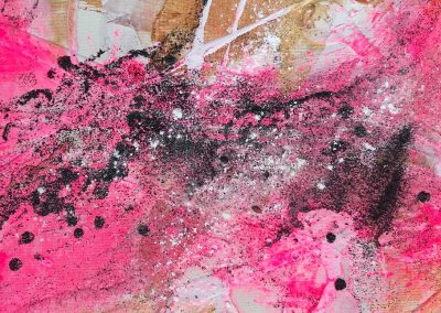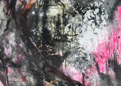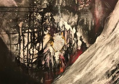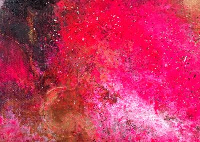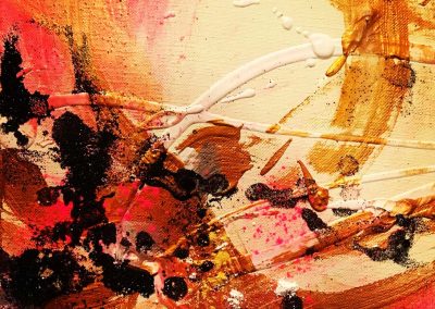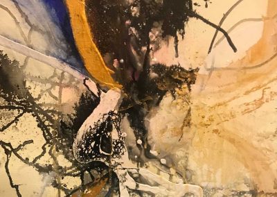複数枚の連作は躍動感に満ちた迫力の作品でした。同時にその迫力の中に垣間見える優しさや静寂も様々な形や色の組み合わせによって感じられ、あなたは一枚の絵の中から様々なメッセージを伝えようとし、それが見事に表現されています。