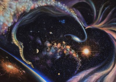 私たち人が、浄化と刷新をせまられる今、新たな時代の天・地・神(人)の脈動の始まりを予兆し、勇気付ける触媒、変容へのアート・イニシエーターとして伊藤清泉は永遠のヴィジョンを中継します。