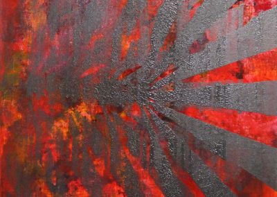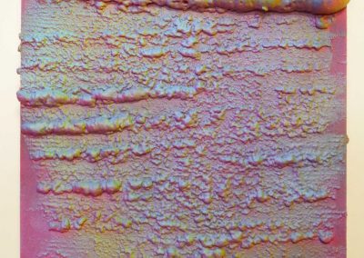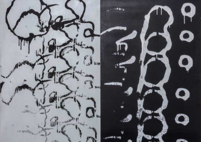 そして現象とは刻々と変化するもので、変化しない実体は存在しないという考えから、自作ローラーによる変化し続ける連続性を用いることで、非局所的な世界への局所的な接点として絵画を捉える。