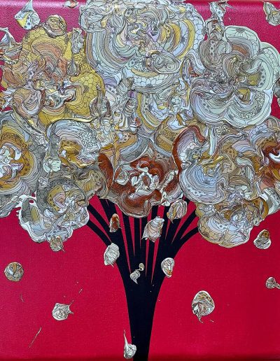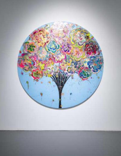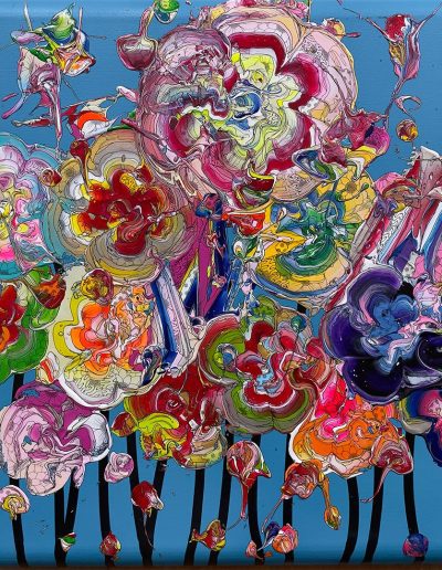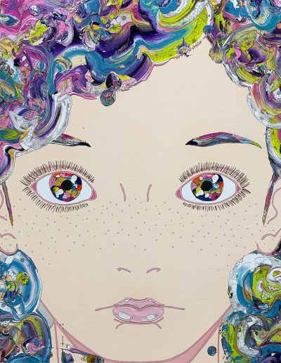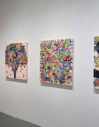 The representative series, “with gratitude,” which lends its name to the exhibition, centers on the theme of appreciating the often-overlooked everyday aspects of life while simultaneously conveying gratitude to the audience. In this series, the paintings are likened to floral offerings, featuring flowers as their motif. The works combine the spontaneity born from blending paints with the meticulous intentionality of penwork, symbolizing the transformation of unforeseen adversities or challenging situations into deliberate outcomes through one’s own willpower.