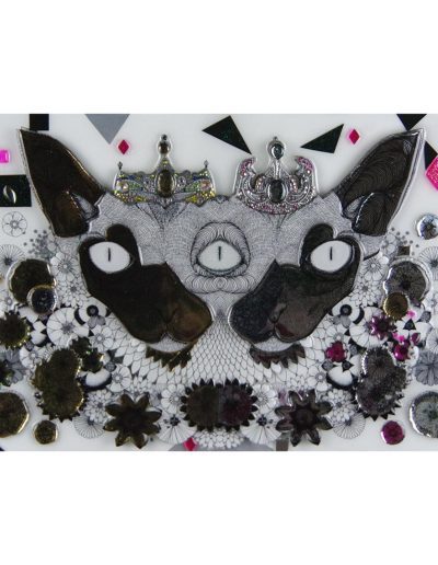 激しいストロークにより強調された絵具と色彩、ペンによる細やかな線描が共存する奥田雄太の絵画は見るものを魅了する。